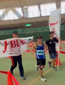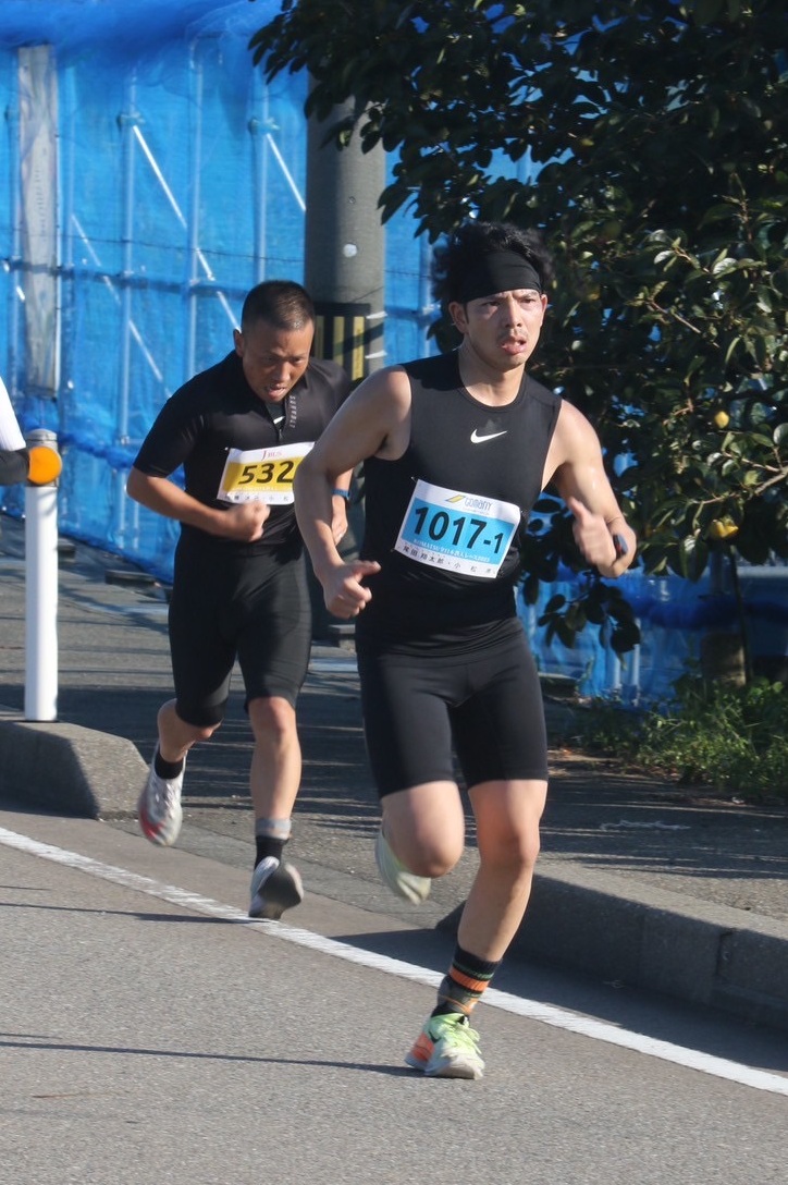 この大会は、メインとなる「鉄人の部」を頂点とし、ここへステップアップするために「ショートの部」と「ロングの部」が設けられています。チームリレーは、ロングの部と同じパートですが、リレー形式で3人が襷(アンクルバンド)を繋ぎます。今年は38チームの参加でした。
